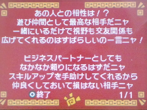 アイルー村 の 性格占い が 中々 的 を 射てたんで さん との 相性 も 占ってみた (*´ω`*)